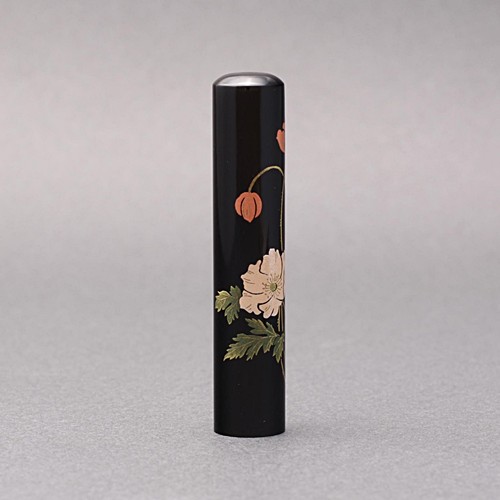 商品番号: 18100828 商品名: かわいい印鑑/蒔絵・花/黒水牛/【ポピー】/12mm/ケース別/熟練職人の手彫り仕上げ |